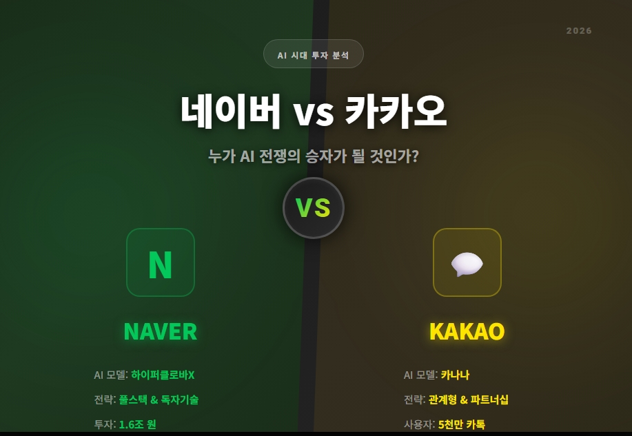 AI 시대, 네이버와 카카오 모두 생존했습니다. 하지만 누가 주도권을 잡느냐는 2026년 상반기에 결정될 것입니다.